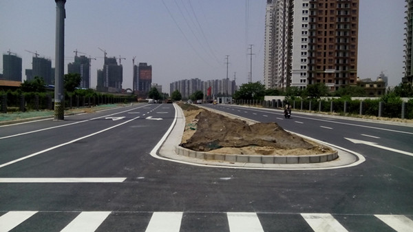 自去年12月5日进场以来,在市政府的大力支持和协调下,在相关局委的鼎力帮助下,公司工程建设团队以“5+2”、“白加黑”的繁忙工作模式,不等不靠,真抓实干,全力推进紫东路工程建设。截止5月中旬,经过各参建单位150个昼夜的努力奋战,该道路机动车道沥青面层铺筑全部完成,雨、污水管道、自来水、天然气和通讯管线等公配管线已铺设完毕,地面标识标线由交警部门施工完成,使该条道路机动车道具备了通车条件。